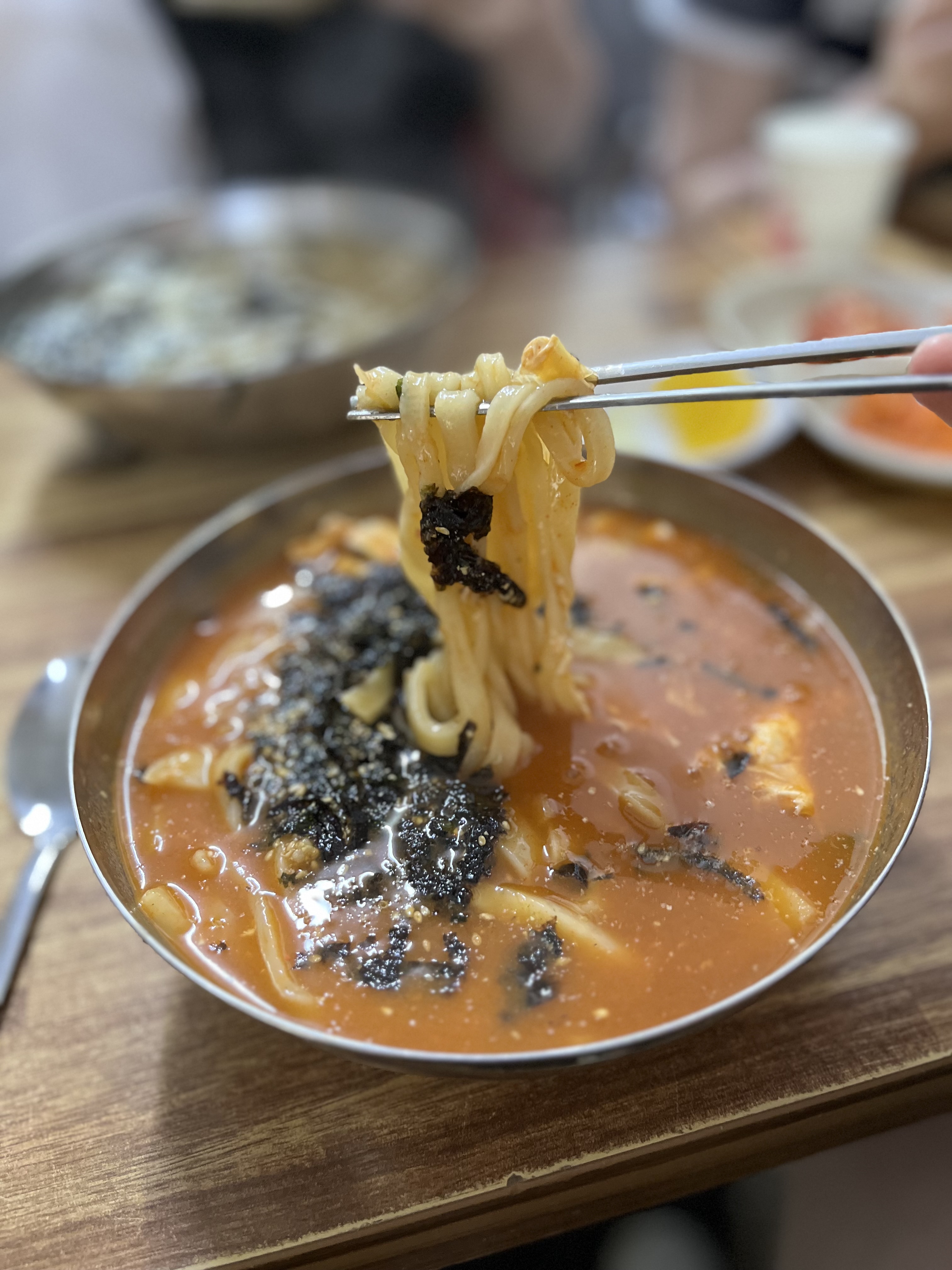 강원도 속초에 방문했다. 속초하면 떠오르는 음식이 있는가? 닭강정은 무조건 먹어야지.🐤 만석닭강정 본점에서는 웨이팅 없이 구매가능. 중앙시장점의 줄이 길면 대충 구경하다가 본점으로. 시장에서 얼마 걸리지도 않음. 🐓🐓🐓🐓🐓 속초는 닭강정 말고도 막국수, 장칼국수가 유명하다고 함. 이번 포스팅은 장칼국수 노포집 후기다. 무려 1994년부터 시작되었다고 함. 30년 가까이 장사를 해서 그런지 상당히 허름했다! 평일 점심시간에 방문. 마침 비도 와서 칼국수 먹기 딱 좋은 날이었다. 가는 길은 막히지 않았다. 허름한 간판과 포장마차 느낌의 천막을 찾아라. 속초 정든식당 화~목 10시 ~ 19시 금~일 10시 ~ 15시 ※ 매주 월요일 휴무 ※ 브레이크타임 14:30~16:30 주차장은 건물 옆에 따로 있기도 하..